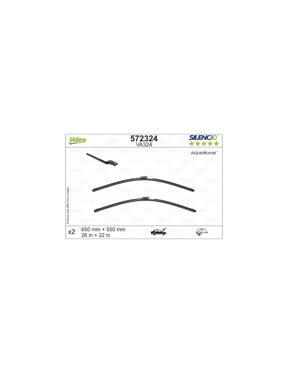 Vindusvisker sett Valeo Aquablade VA324. Kode: VA324, Lengde: 650/550.