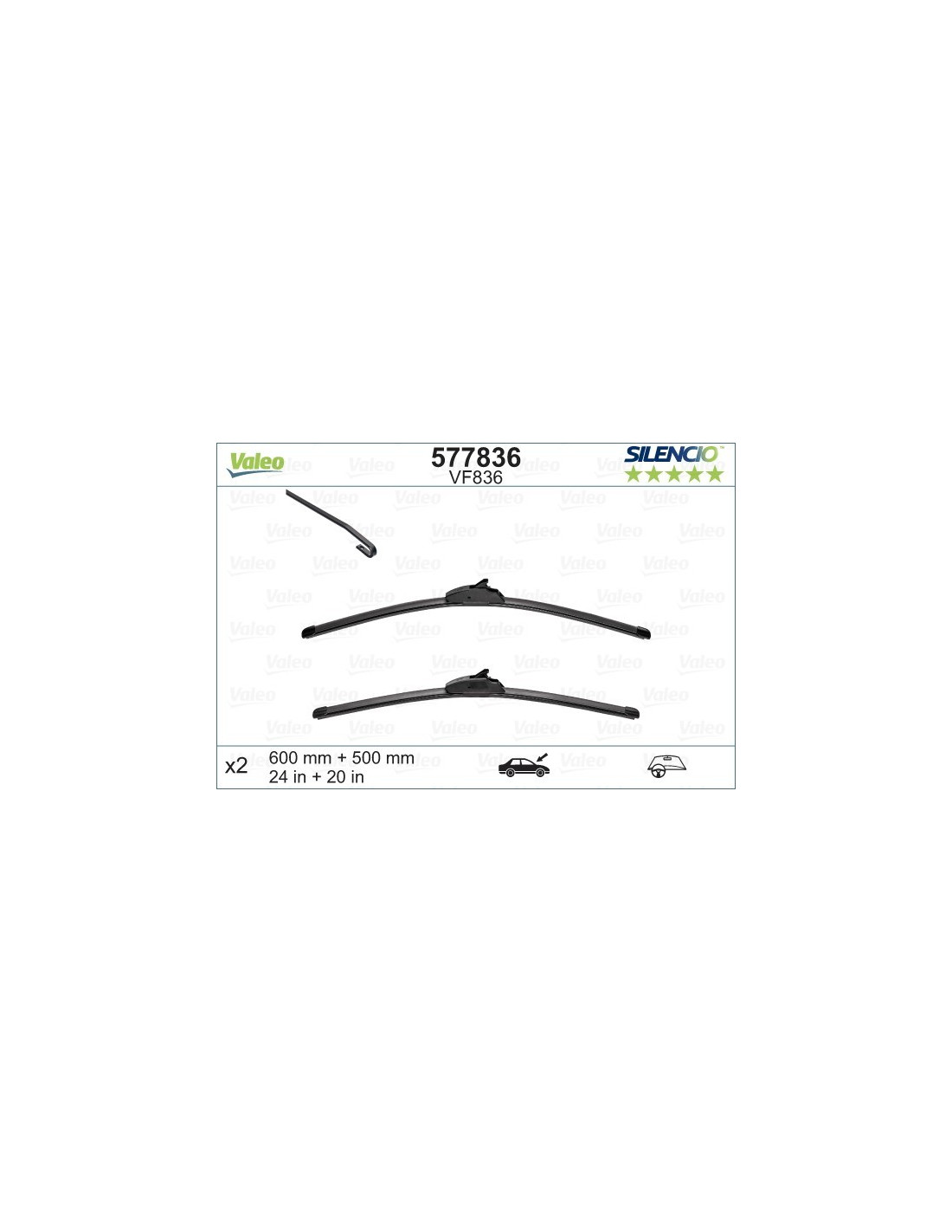 Vindusvisker sett Valeo Silencio VF836. Kode: VF836, Lengde: 600/500.