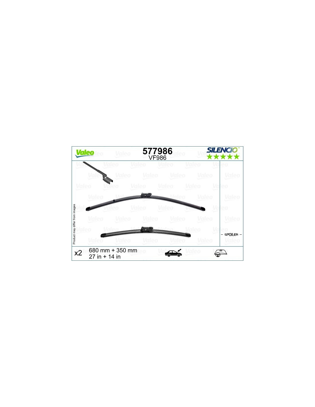 Vindusvisker sett Valeo Silencio VF986. Kode: VF986, Lengde: 680/350.
